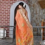 Be the first to review “Noir & Grace Designer Orange Tissue Cotton Saree with Zari Work & Digital Print | Orange Party Wear Saree with Blouse Piece & Tassels”