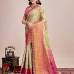 Noir & Grace Elegant Mix Of Pastel Green, Gold, And Pink Hues Semi Silk Kanjivaram Saree with Rich Zari Weave | Perfect for Weddings & Festive Celebrations