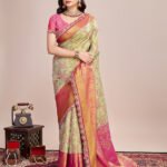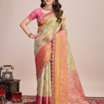 This saree embodies sophistication and grace — perfect for bridesmaids, festive events, or cultural celebrations. Its lightweight texture ensures comfort throughout your special day while maintaining a royal charm.