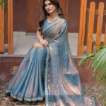 This exquisite saree is a perfect choice for semi-formal events, evening gatherings, festive occasions, or any event where you wish to make a sophisticated and memorable statement with a subtle yet captivating shimmer.