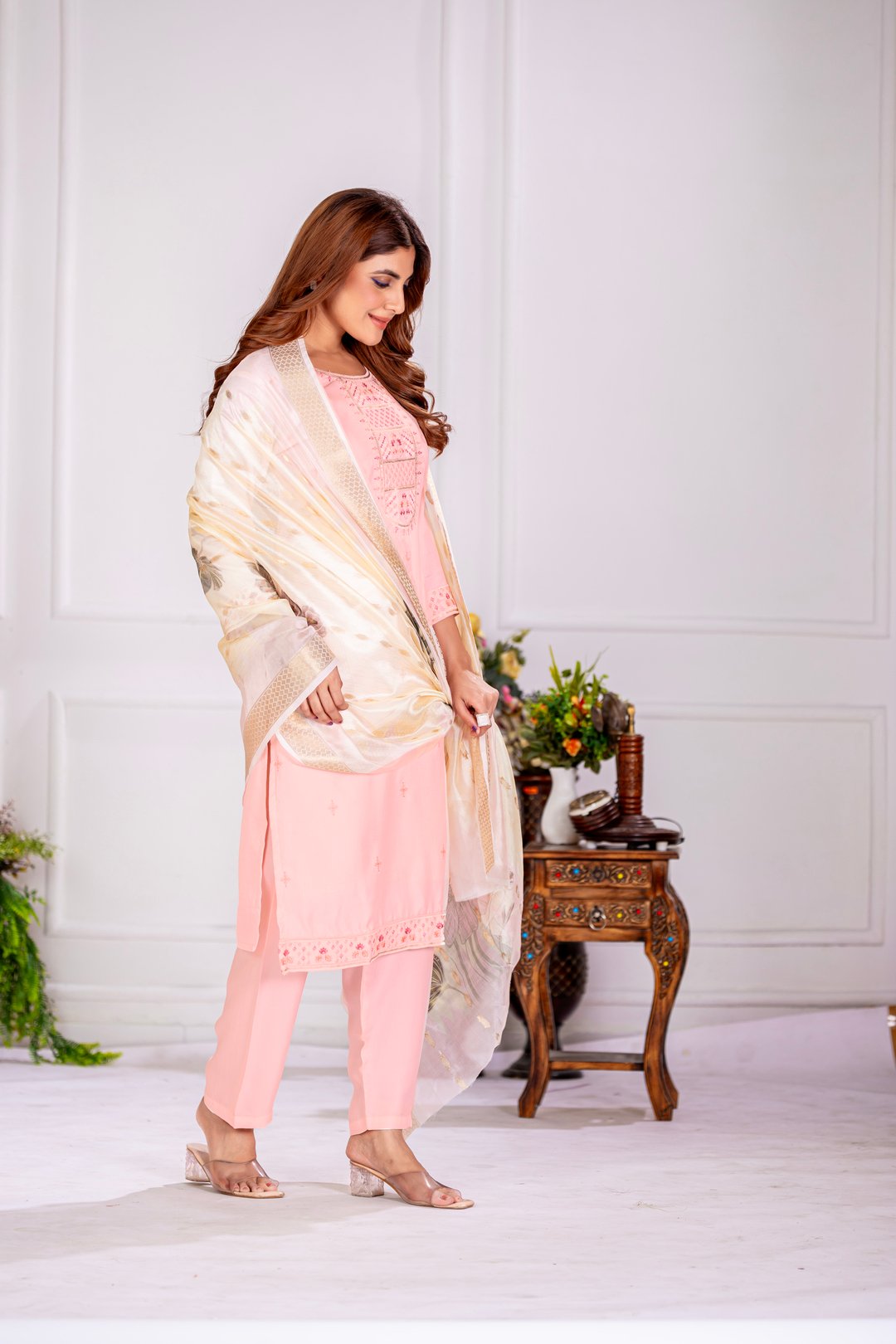 Complete Ensemble: Comes as a complete 3-piece set, including the Kurta, Palazzo, and a complementary Dupatta to complete your stunning outfit.