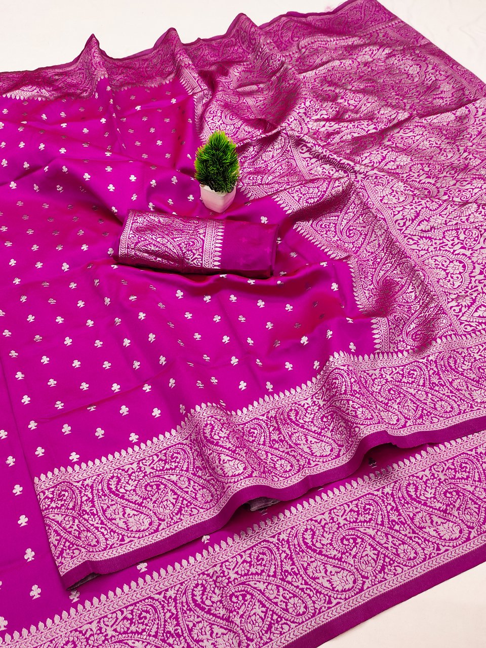 Elevate your ethnic wardrobe with this Pink Soft Lichi Silk Saree, designed with an elegant rich pallu and all-over jacquard weaving. The lightweight silk fabric drapes beautifully, making it comfortable yet Noir & Gracefor any occasion. Its Banarasi-inspired design and silver detailing make it an ideal choice for weddings, festive celebrations, parties, and cultural events.